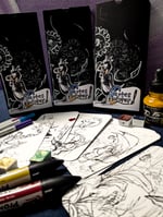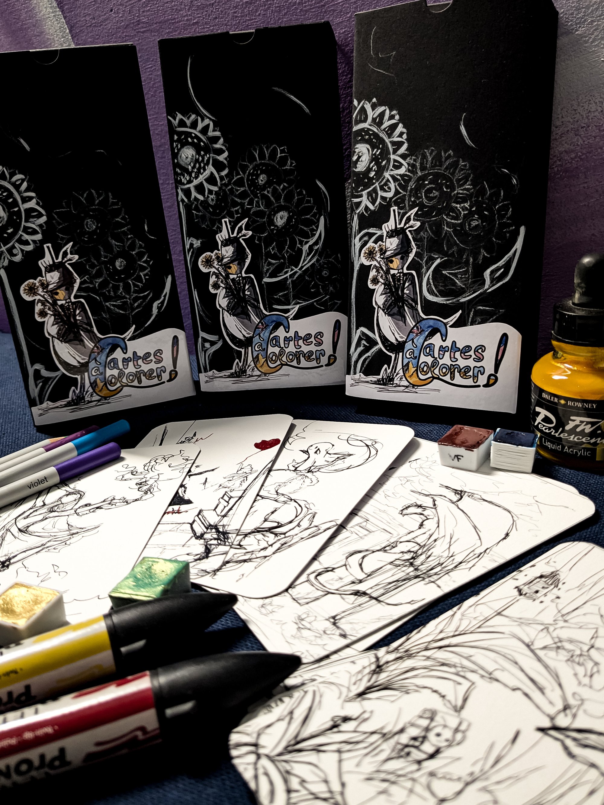 Les crayonnés de mes illustrations imprimées sur du papier aquarelle attendent tes couleurs. Crayon, pastel, encre, aquarelle... À toi de choisir.